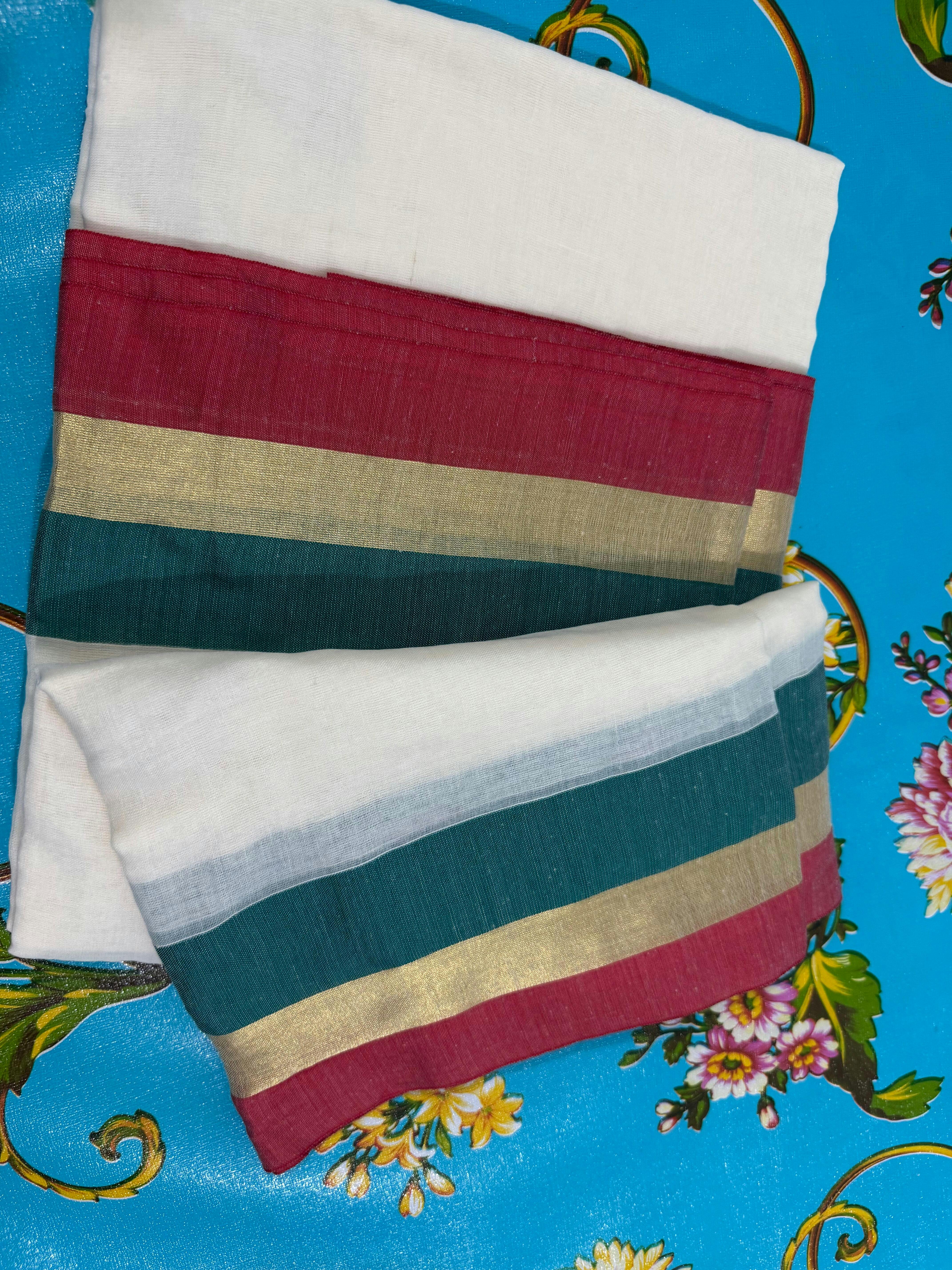 Cream Mul Mul Cotton Saree With contrast blouse pieces